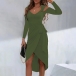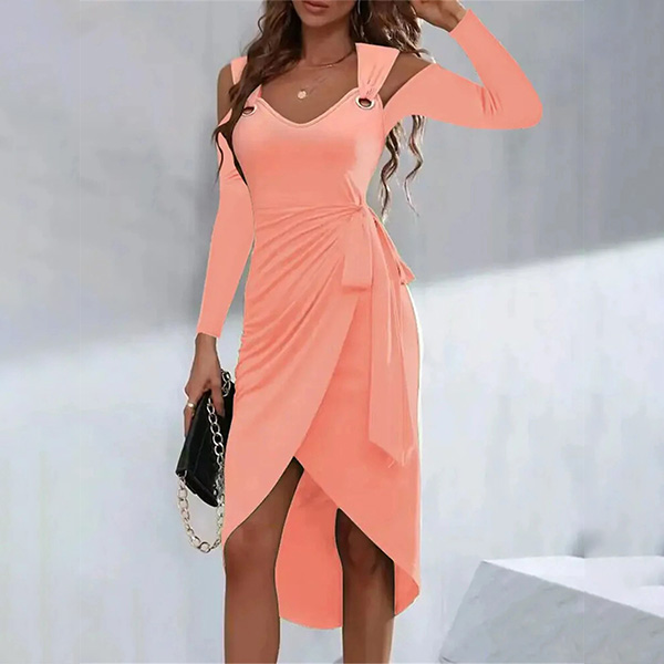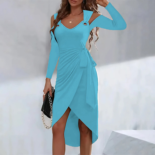 Sexy Solid Color Open Shoulder Long Sleeve Self-tie Irregular Hemline Party Dress
