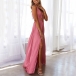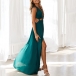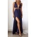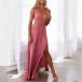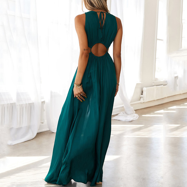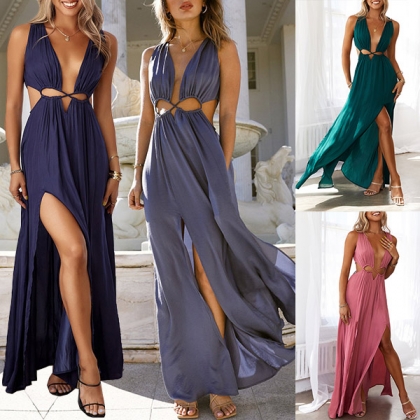 Sexy Solid Color Plung V-neck Cutout Slit Chiffon Dress