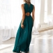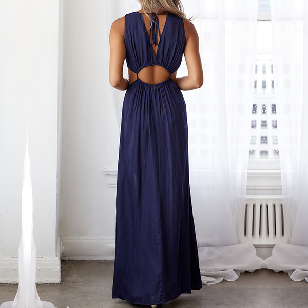 This dress is sure to turn heads! It features a plunging v-neckline, cut out details along the waist and back, and a slit up the leg. The chiffon fabric is light and airy, making it perfect for a summer day.