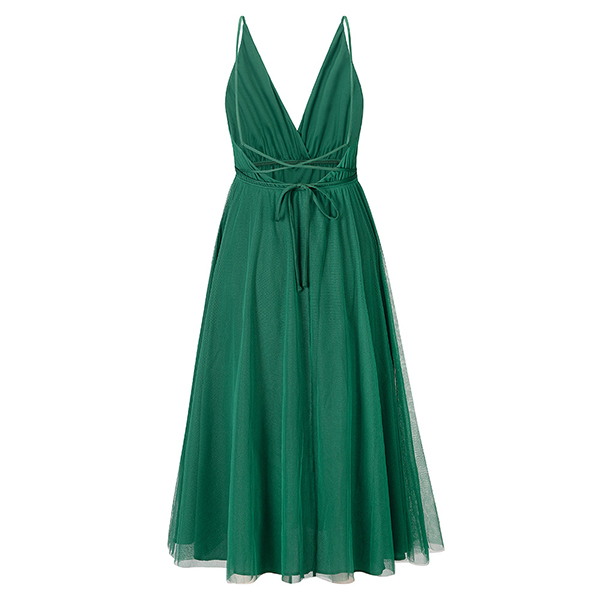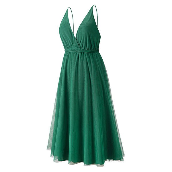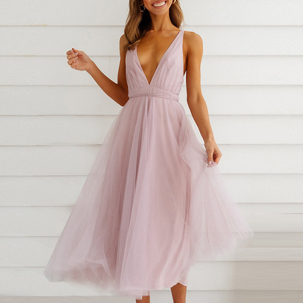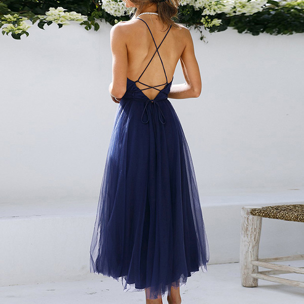 Sexy Solid Color Plunge V-neck Criss-cross Backless Gauze Dress