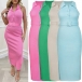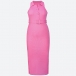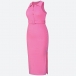 Sexy Solid Color Polo Neck Buttoned Sleeveless Bodycon Dress with Belt