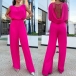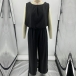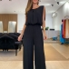 Embrace your confidence and embrace your inner allure with this stunning and fashionable jumpsuit. This jumpsuit combines a solid color design with a round neck, backless feature, and wide-leg pants for a captivating and alluring look.