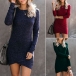 Sexy Solid Color Round Neck Irregular Hem Long Sleeve Slim Fit Dress