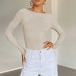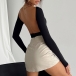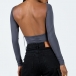 Sexy Solid Color Round Neck Long Sleeve Backless Bodysuit