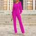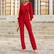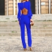 Sexy Solid Color Round Neck Long Sleeve Backless Jumpsuit