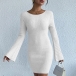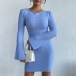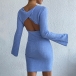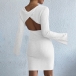 Sexy Solid Color Round Neck Long Sleeve Backless Ribbed Dress