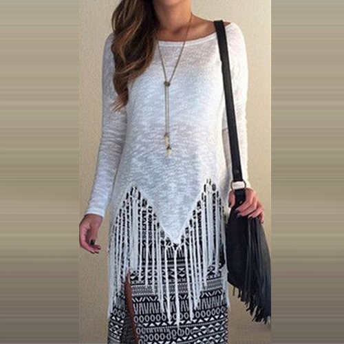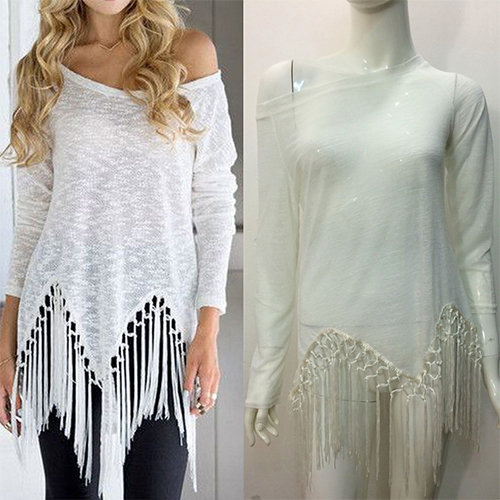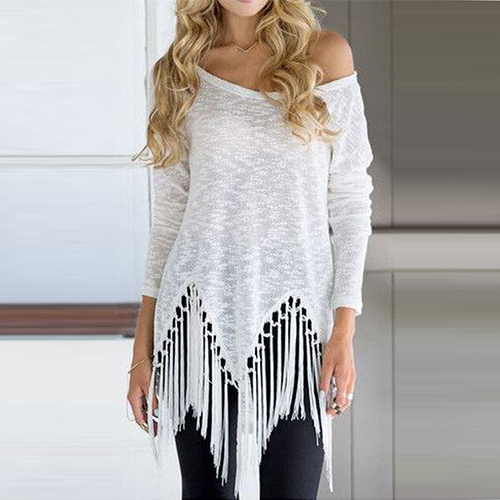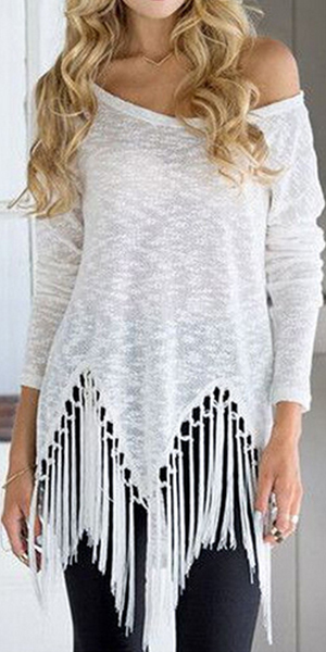 Chic tassel design makes this tops easily grab your attention. A solid color style,