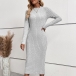 Sexy Solid Color Round Neck Long Sleeve Ribbed Bodycon Dress