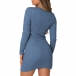 Sexy Solid Color Round Neck Long Sleeve Side Zipper Slit Bodycon Dress