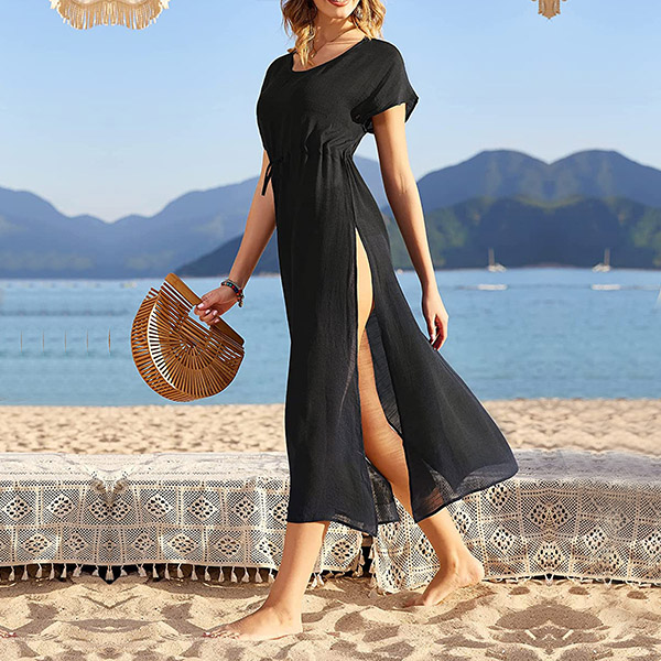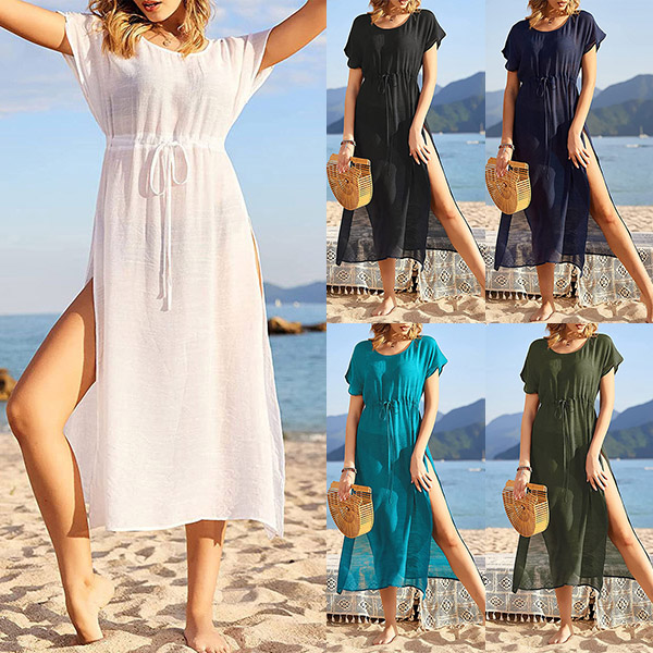 How about this swim cover-up dress? I like the side slit, adds a touch of sexiness, wanna have a try?