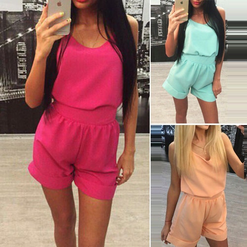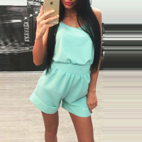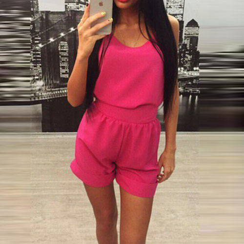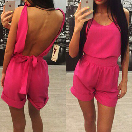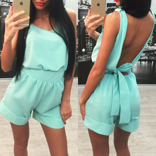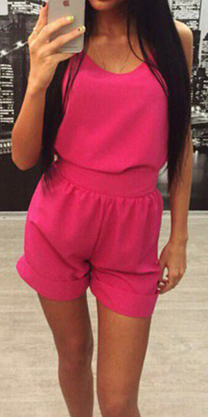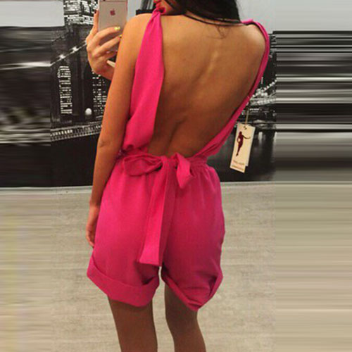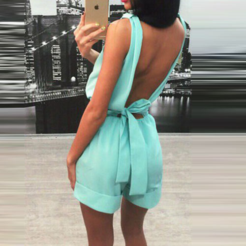 This romper is crafted from soft material, with backless, sleeveless, round neck and solid color
