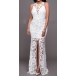 and high-slit hem design. All-over lace design is paired with gathered waist, which infuses a touch of