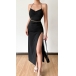 This dress is sure to turn heads and get you noticed! It features a front ruched, backless with cross-criss details and a high side slit for a sexy look.