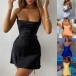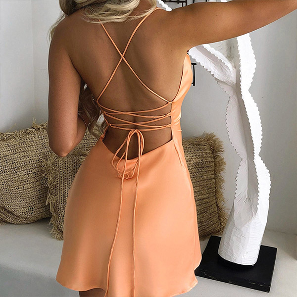 Sexy Solid Color Ruched Crisscross Slip Bodycon Dress