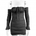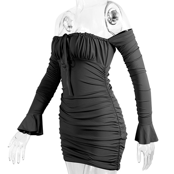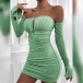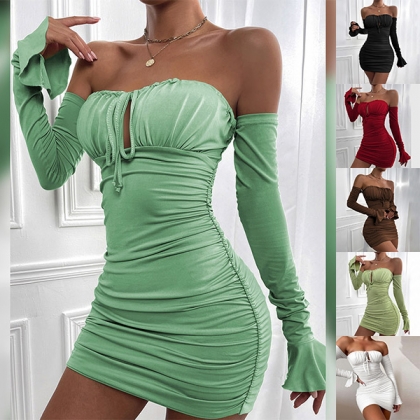 Sexy Solid Color Ruched Off-the-shoulder Long Sleeve Bodycon Party Dress