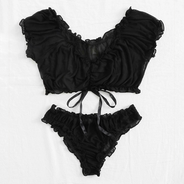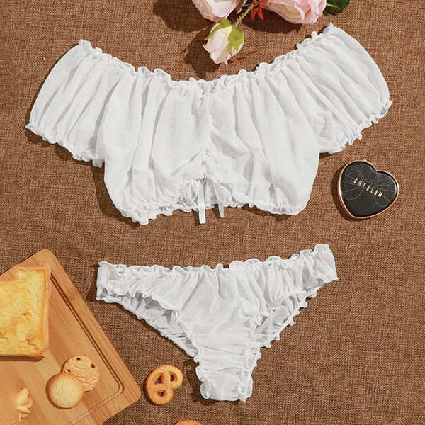Sexy Solid Color Ruched Off-the-shoulder Two-piece Lingerie Set