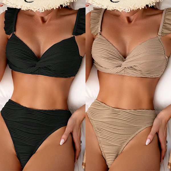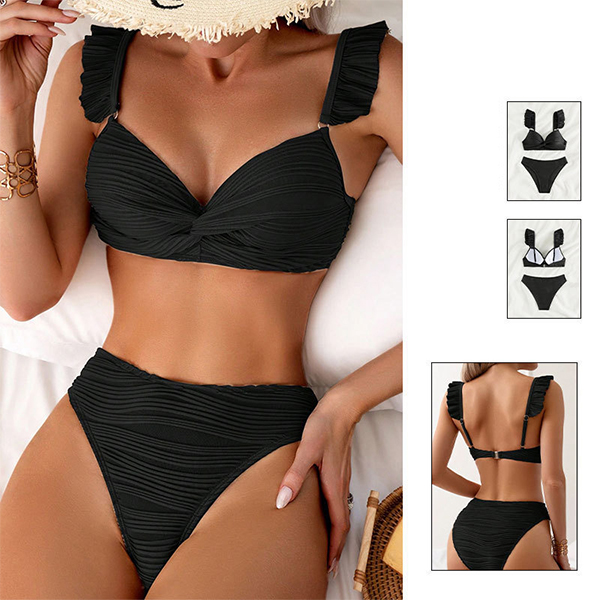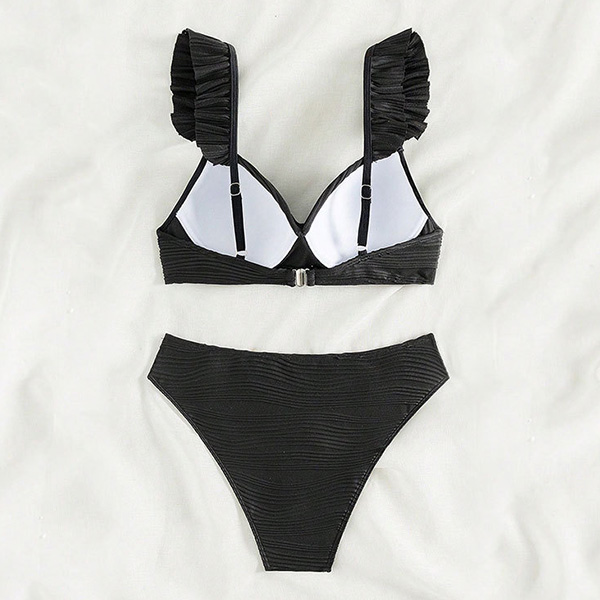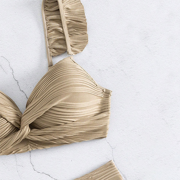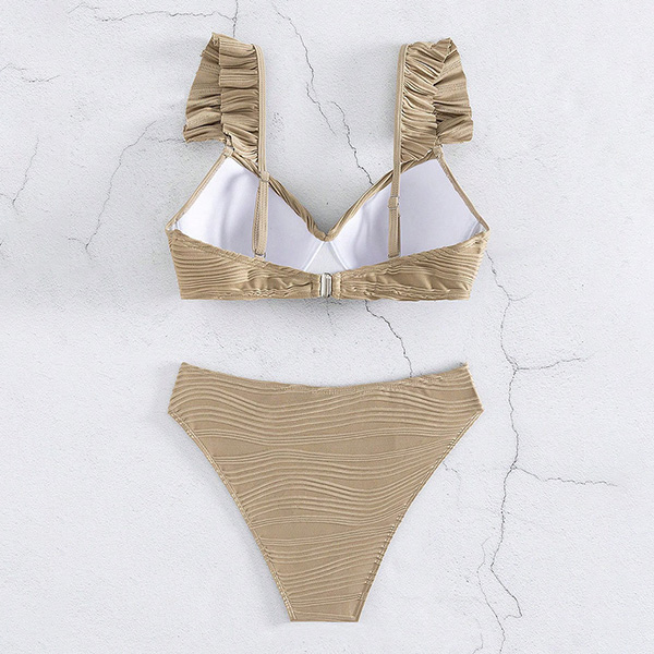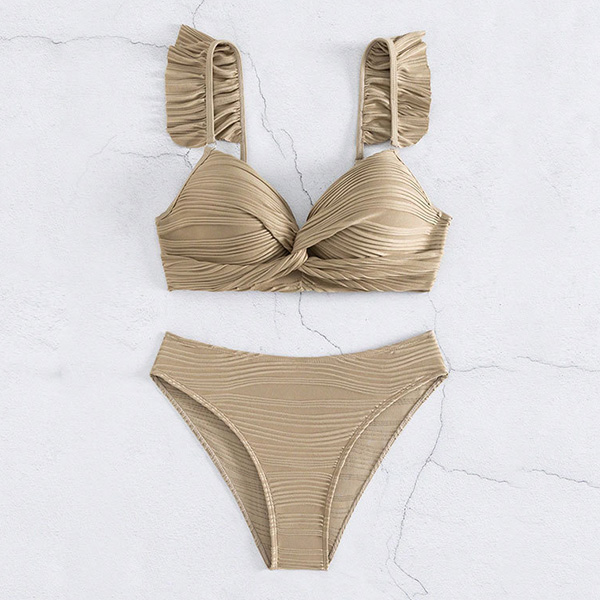 Sexy Solid Color Ruched Ruffled Two-piece Bikini Set