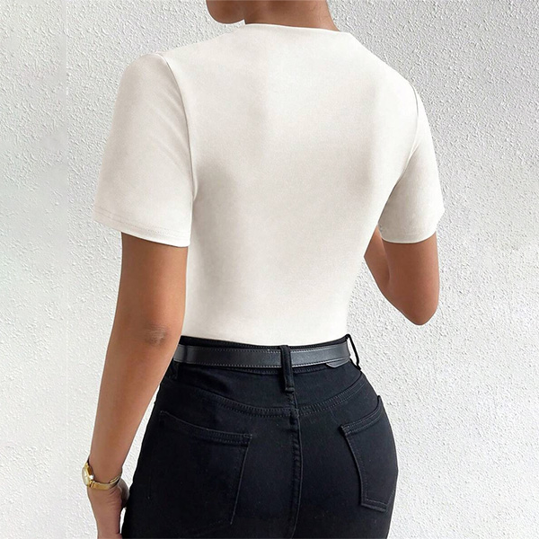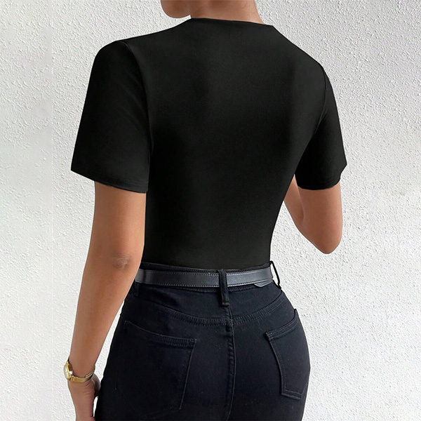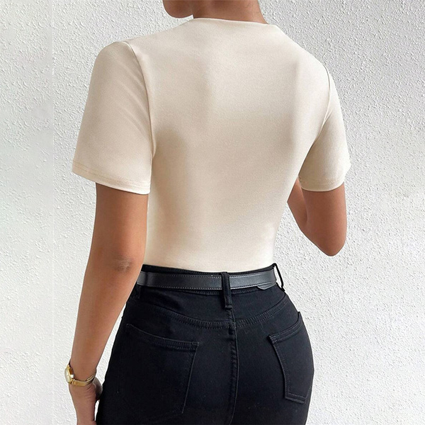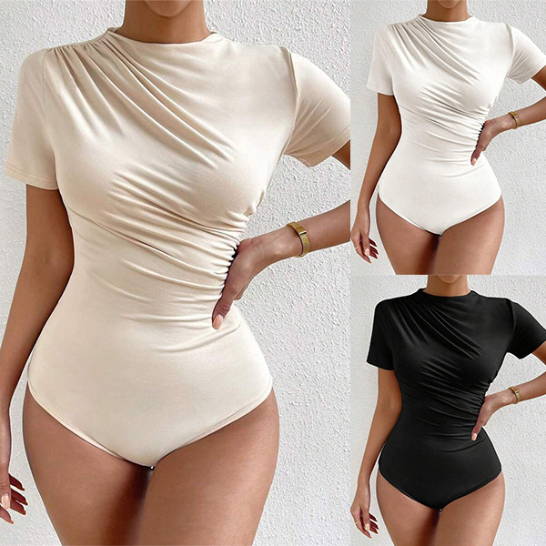 This bodysuit features a ruched detailing and short sleeves for a sexy and stylish look. You can pair it with various bottoms and accessories.
