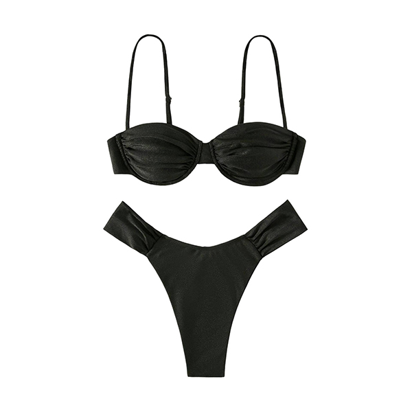 Sexy Solid Color Ruched Two-piece Bikini Set
