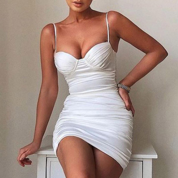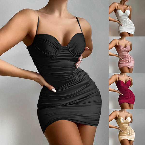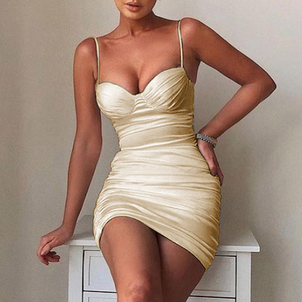 Sexy Solid Color Ruched V-neck Bodycon Slip Dress