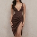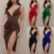 This sexy dress features a V-neckline and ruched detailing add a touch of femininity and accentuate your curves, while the side slit provides a daring and alluring look. Wanna have one?