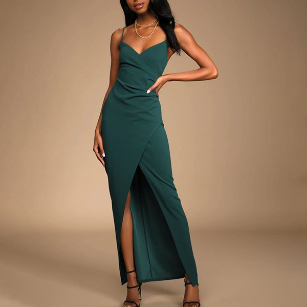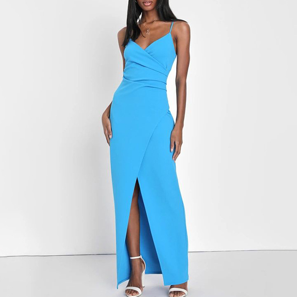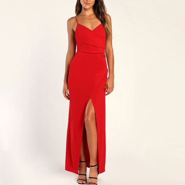 Sexy Solid Color Ruched V-neck Slit Slip Party Dress