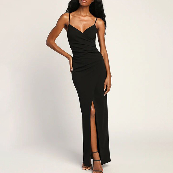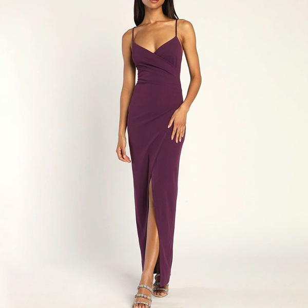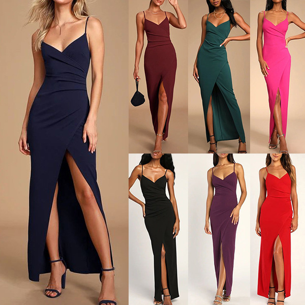 This dress is designed to highlight your curves and showcase your confidence. The solid color adds a touch of elegance, while the ruched detailing creates a figure-flattering silhouette. The V-neckline adds a hint of allure, drawing attention to your décolletage. The slit detail adds a touch of sexiness, allowing you to show off a bit of leg as you dance the night away. Made from high-quality fabric, this dress feels luxurious against your skin and provides a comfortable fit.