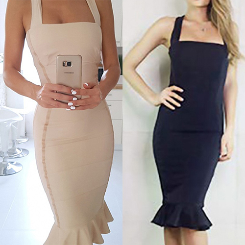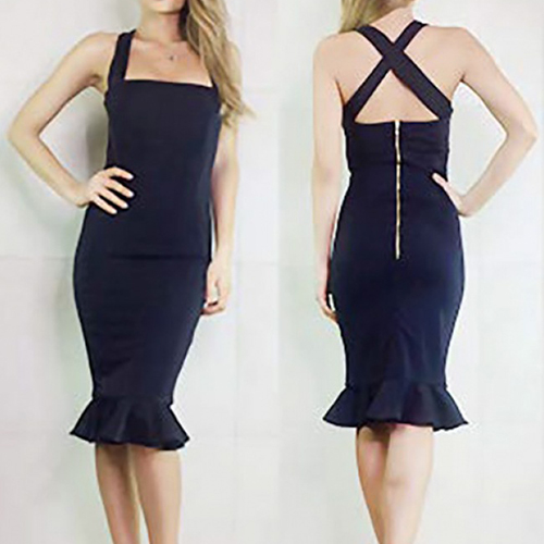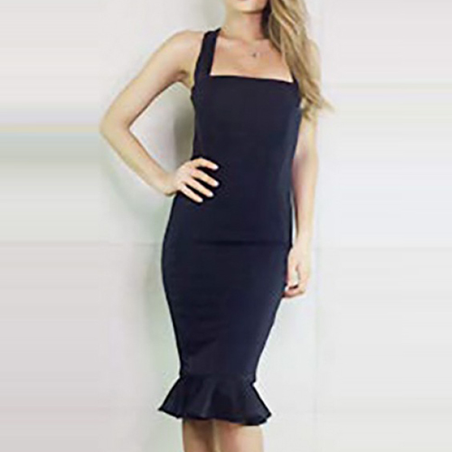 back and solid color design, sexy and sultry. Chic ruffle hem makes this dress more beautiful.