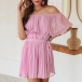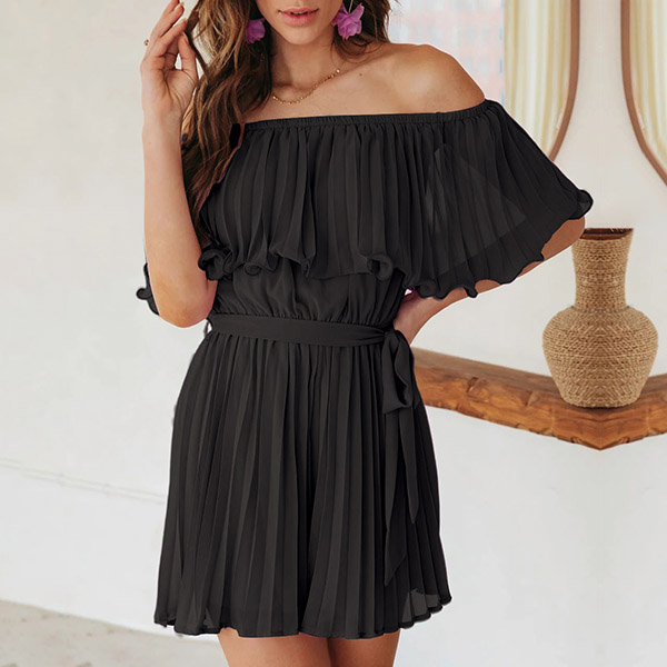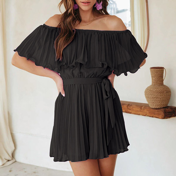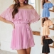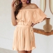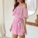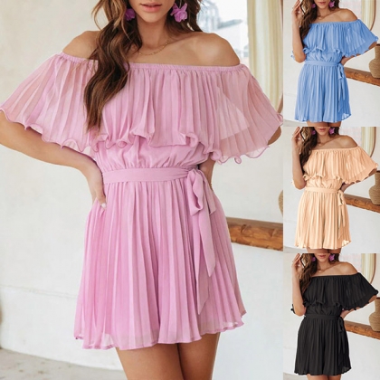Sexy Solid Color Ruffled Off-the-shoulder Self-tie Romper