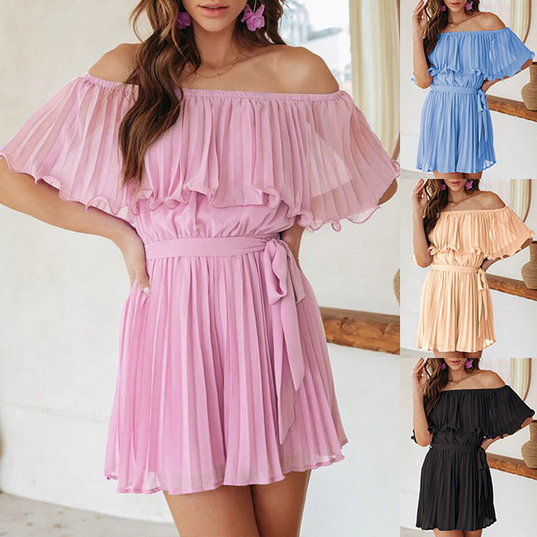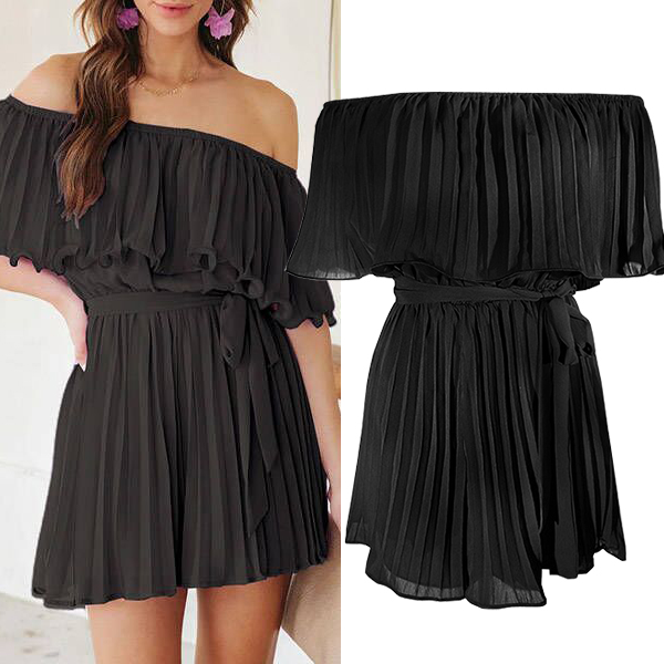 This flirty and stylish romper is perfect for those who want to make a statement. The off-the-shoulder design adds a touch of allure, while the ruffled detailing brings a playful and feminine element to the romper. The self-tie waist allows you to adjust the fit to your liking, accentuating your curves. Made with high-quality materials, this romper offers a comfortable and flattering fit.