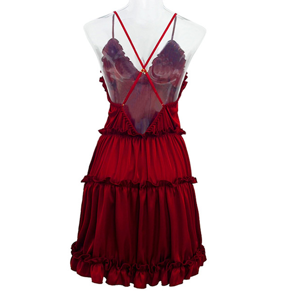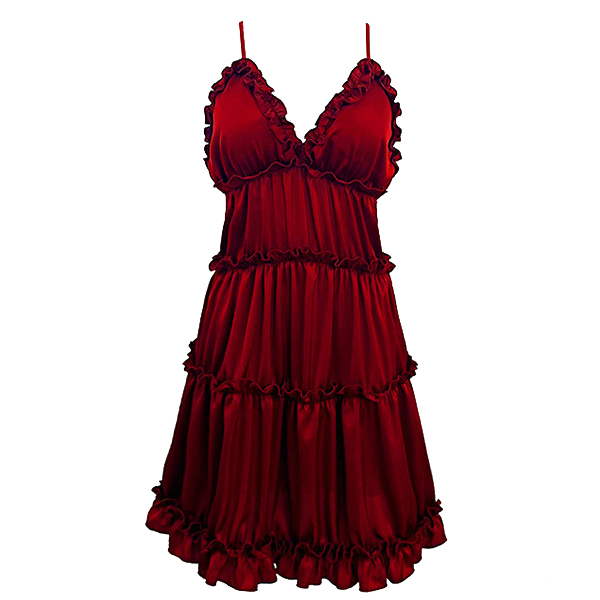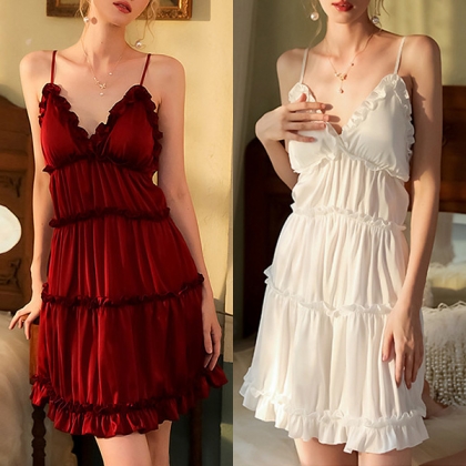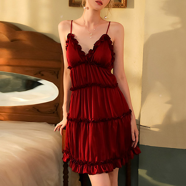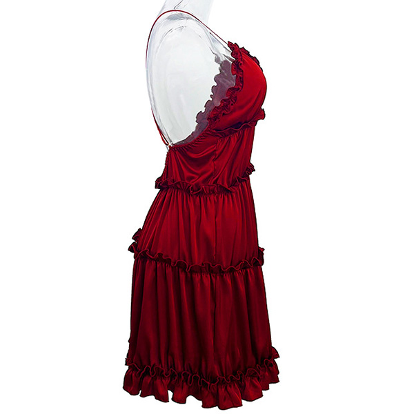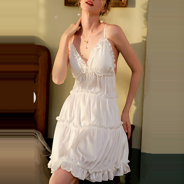 Sexy Solid Color Ruffled V-neck Backless Tiered Slip Nightwear Dress