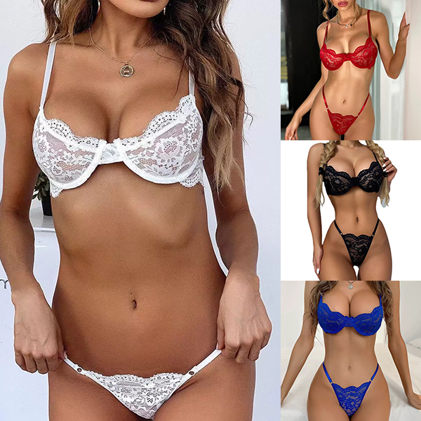 Crafted from soft and breathable fabric,this underwear set can give you an utmost comfort,while the hollow out see-through lace details will make it look more alluring. Including a lace bra,a thong and a bow-knot choker necklace,this lingerie set is perfect for Valentine's Day, date nights, wedding nights, honeymoon nights, role play and lingerie party.