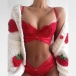 Sexy Solid Color See-through Lace Underwear Lingerie Set
