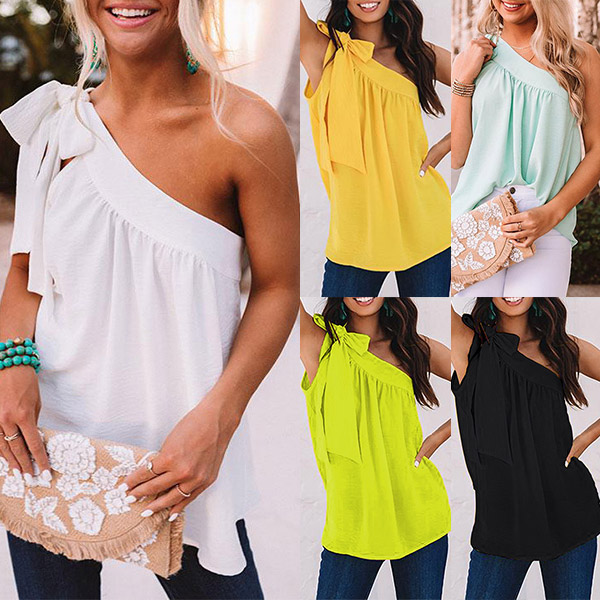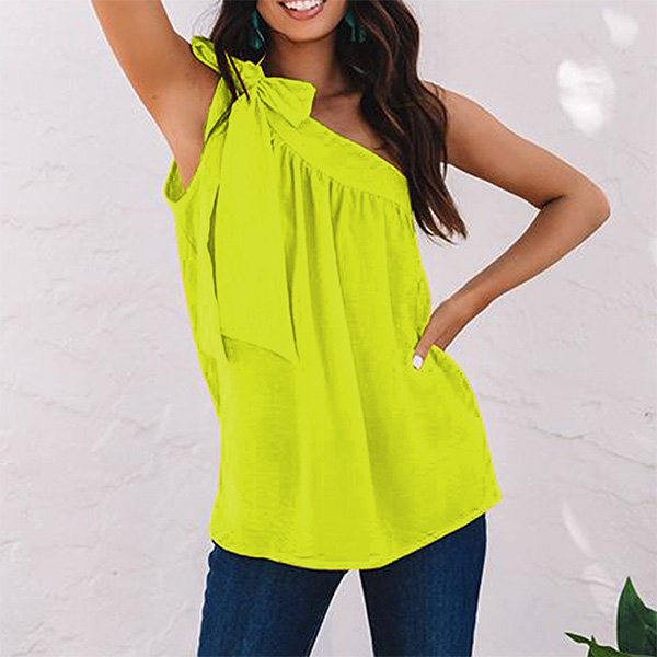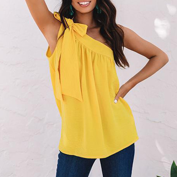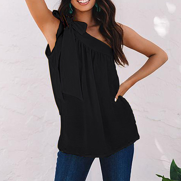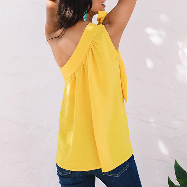 Sexy Solid Color Self-tie One-shoulder Shirt