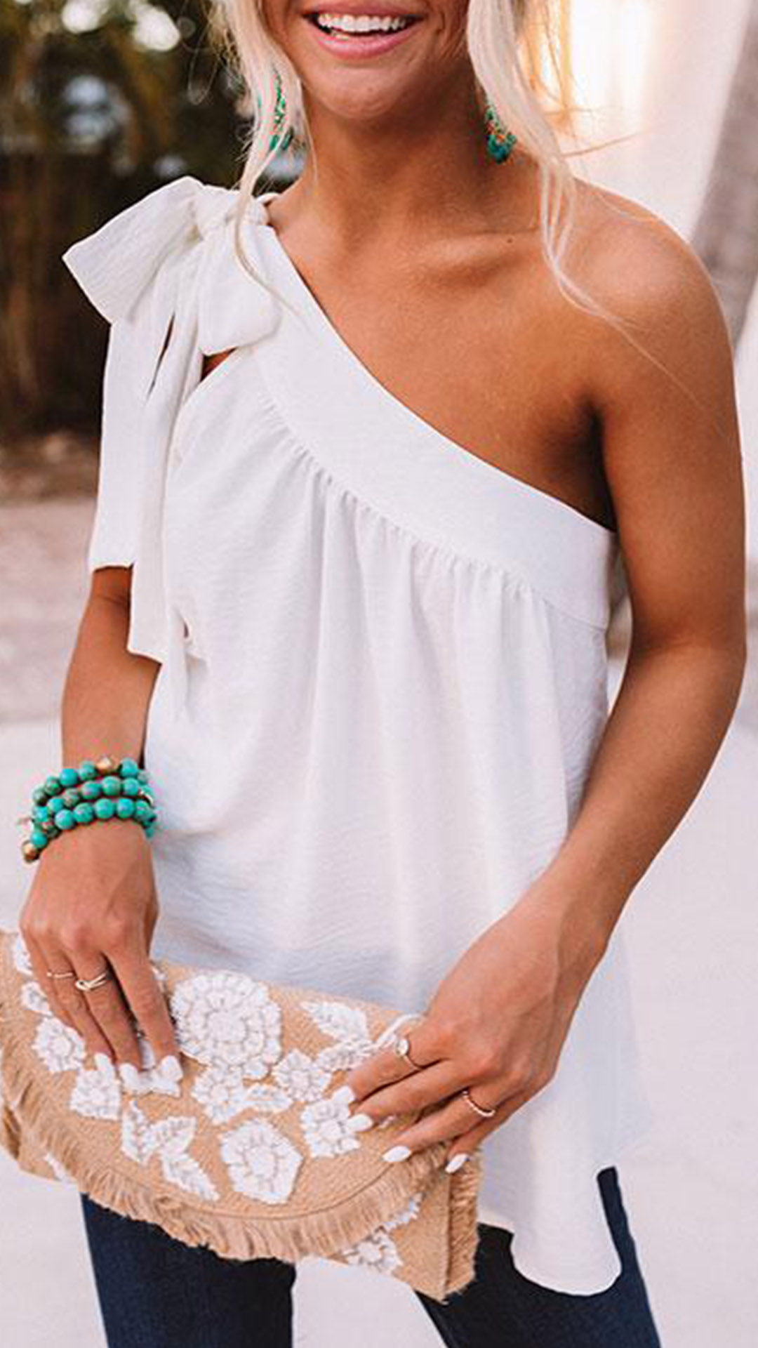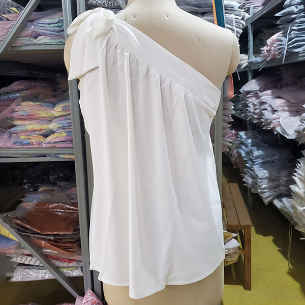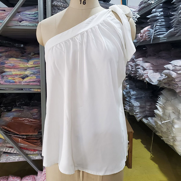 This solid color shirt features the one-shoulder design with self-tie strap, chic?