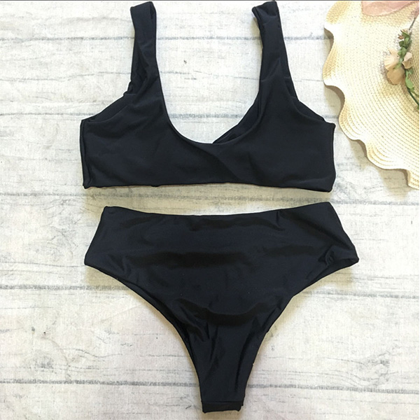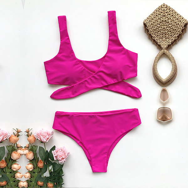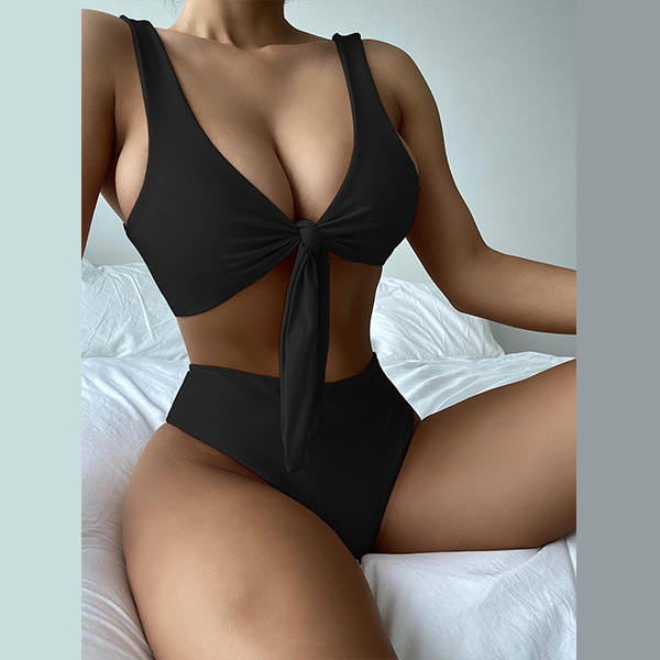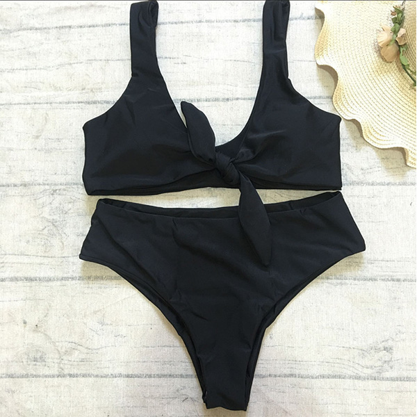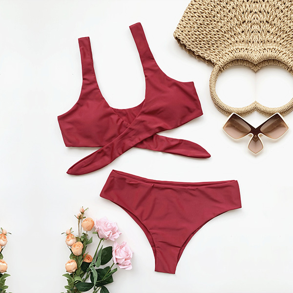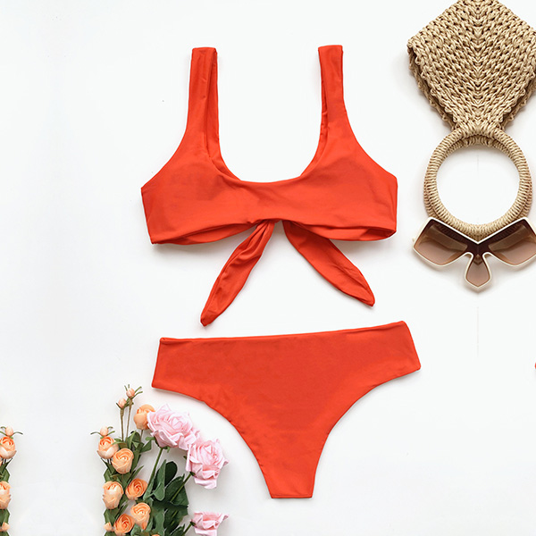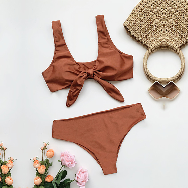 Sexy Solid Color Self-tie Two-piece Bikini Set