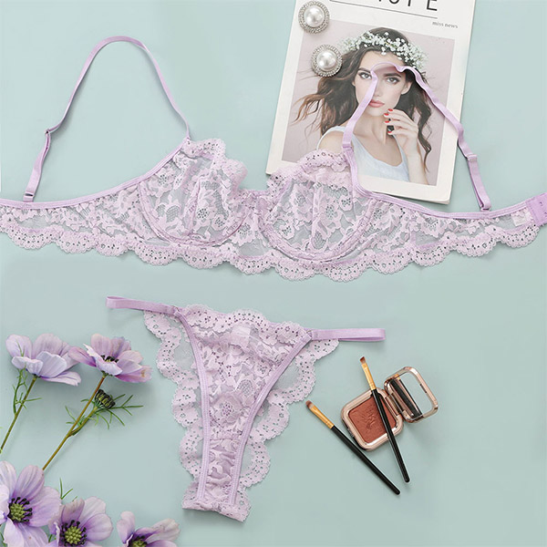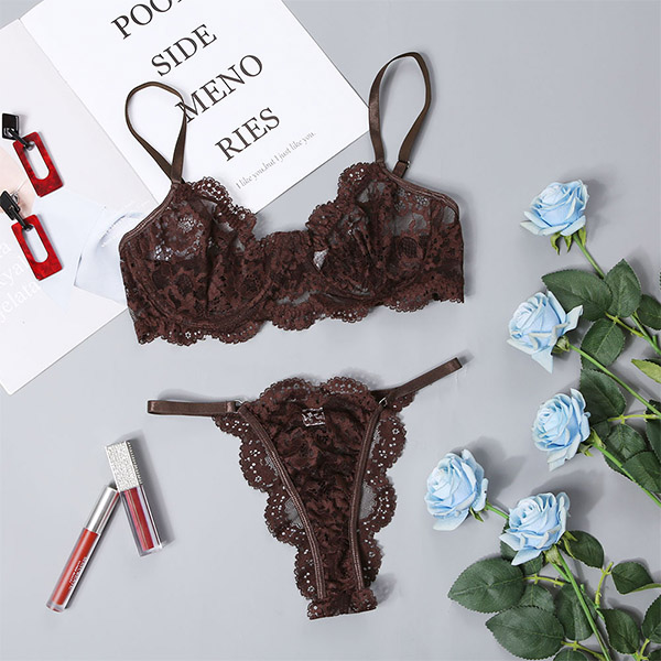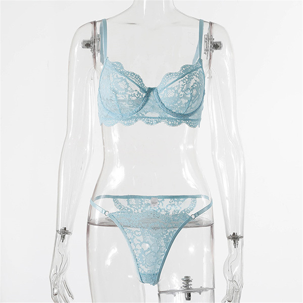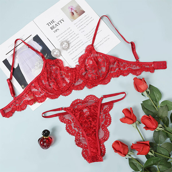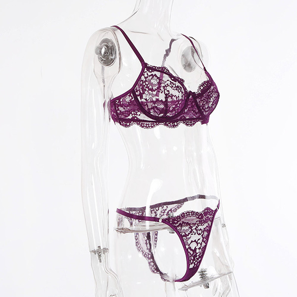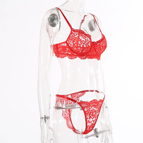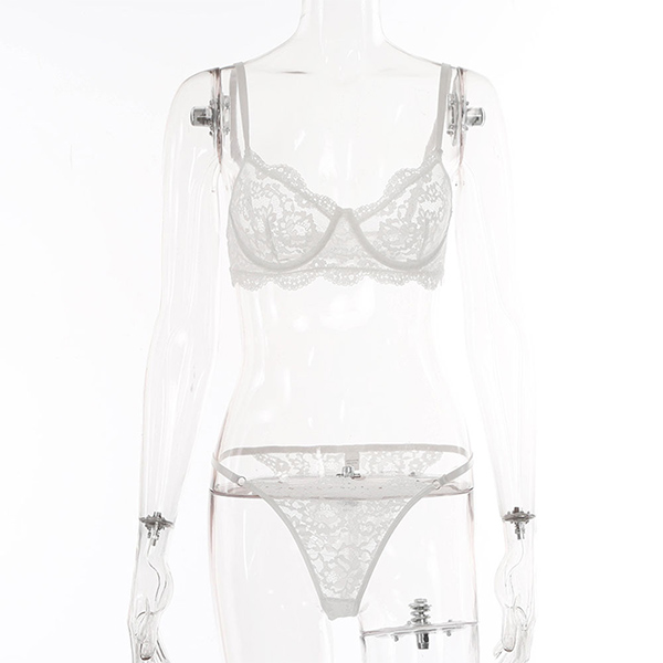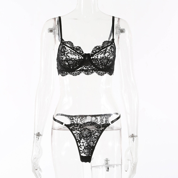 Sexy Solid Color Sheer Lace Underwear Lingerie Set