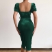 Sexy Solid Color Short Sleeve Low-cut Sweetheart Short Peasant Sleeves Bodycon Dress with Belt