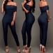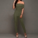 solid color, short sleeve, backless and off shoulder design, this jumpsuit can perfect highlight