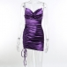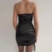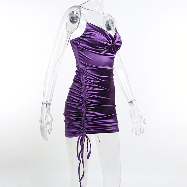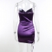 Sexy Solid Color Side Drawstring Draped V-neck Sling Chain Dress