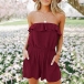 Sexy Solid Color Side Pockets Ruffle Off-the-shoulder Romper