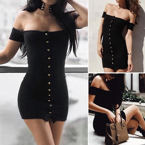 Sexy Solid Color Single-breasted Off Shoulder Backless Short Sleeve Dress