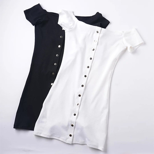 accompanied with backless, short sleeve and single-breasted design, sexy and sultry. Solid color