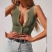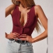 Sexy Solid Color Sleeveless Buttoned V-neck Bodysuit