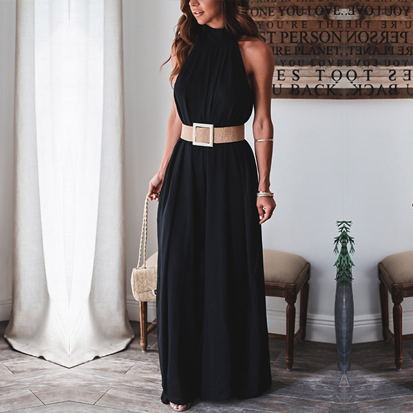 Sexy Solid Color Sleeveless Halter Maxi Dress