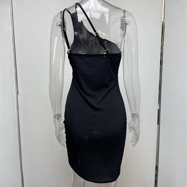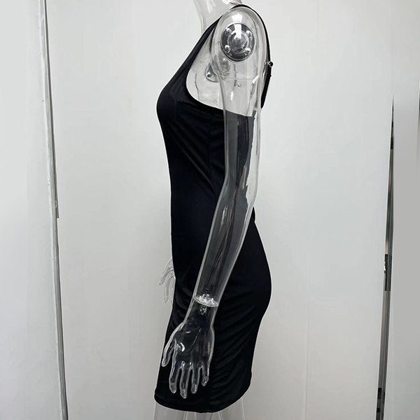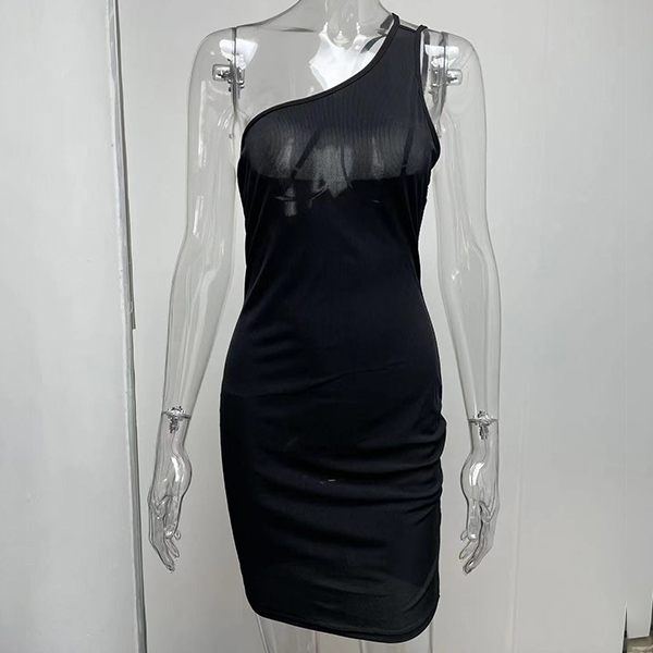 Sexy Solid Color Sleeveless One-shoulder Bodycon Dress