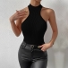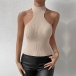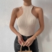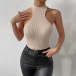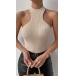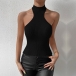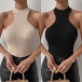 This top features a sleek and form-fitting design, a sleeveless silhouette, and ribbed texture, creating a versatile and captivating ensemble.Pair it with high-waisted jeans or a skirt for a casual and effortless look.