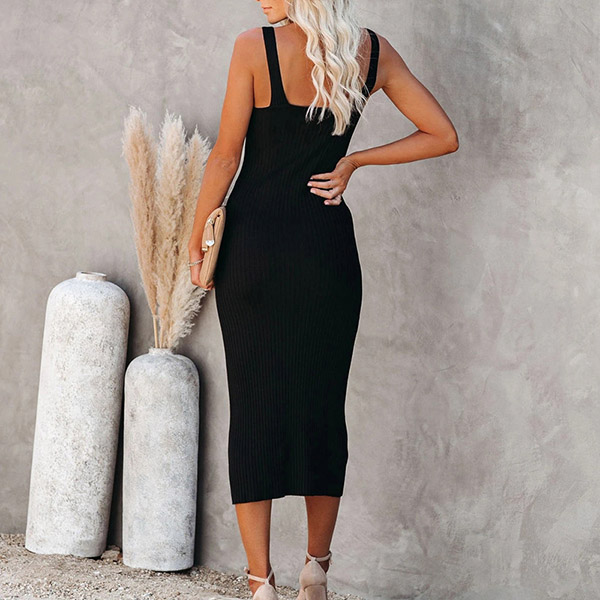 Sexy Solid Color Sleeveless V-neck Ribbed Bodycon Dress