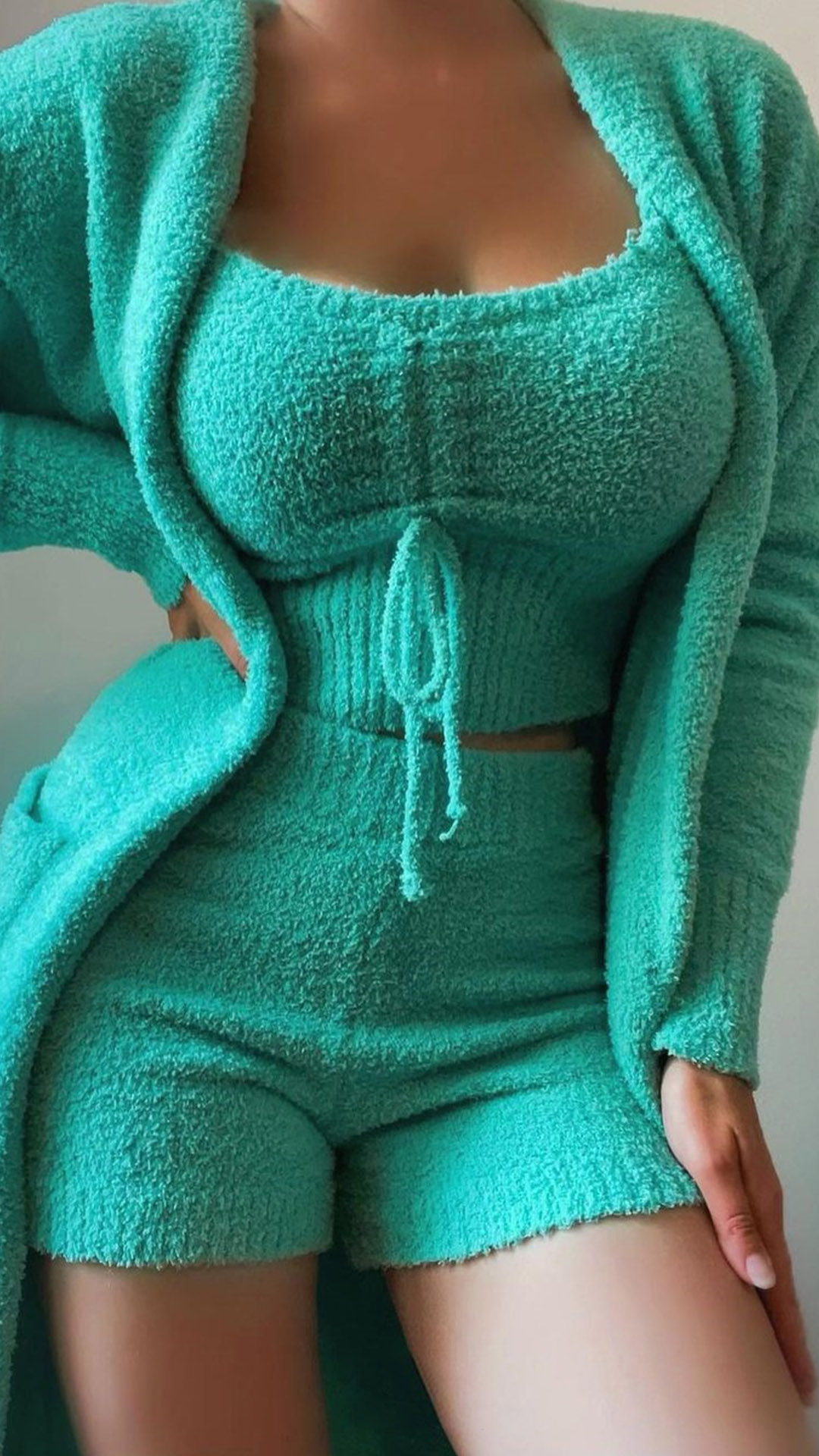When you go out with this two-piece set,then you can easily win more envious eyes. Solid color style,including a sling crop top and a high waist shorts,this two-piece set also can portray your perfect and slender figure. Just update your style and boost your charm with this two-piece set.