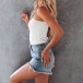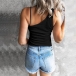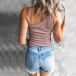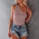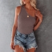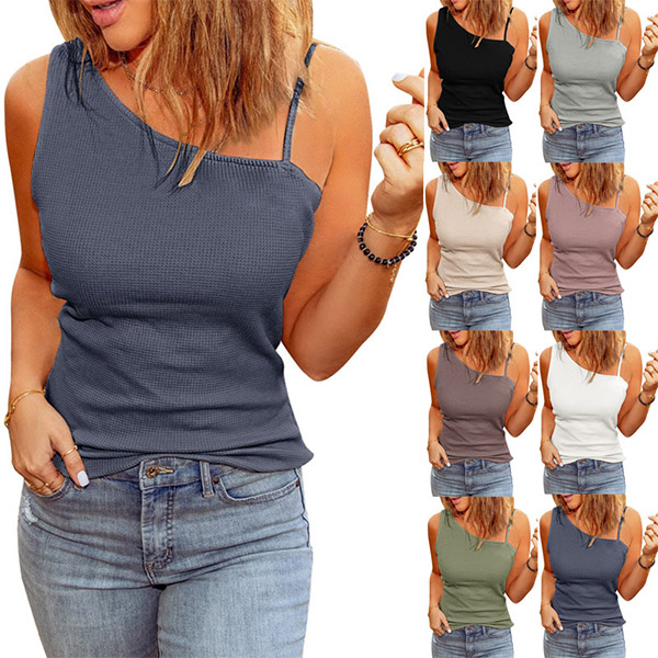 How about this sleeveless shirt? The Sloping Shoulders design is both stylish and sexy, and the solid color is perfect for pairing with your favorite jeans or shorts.